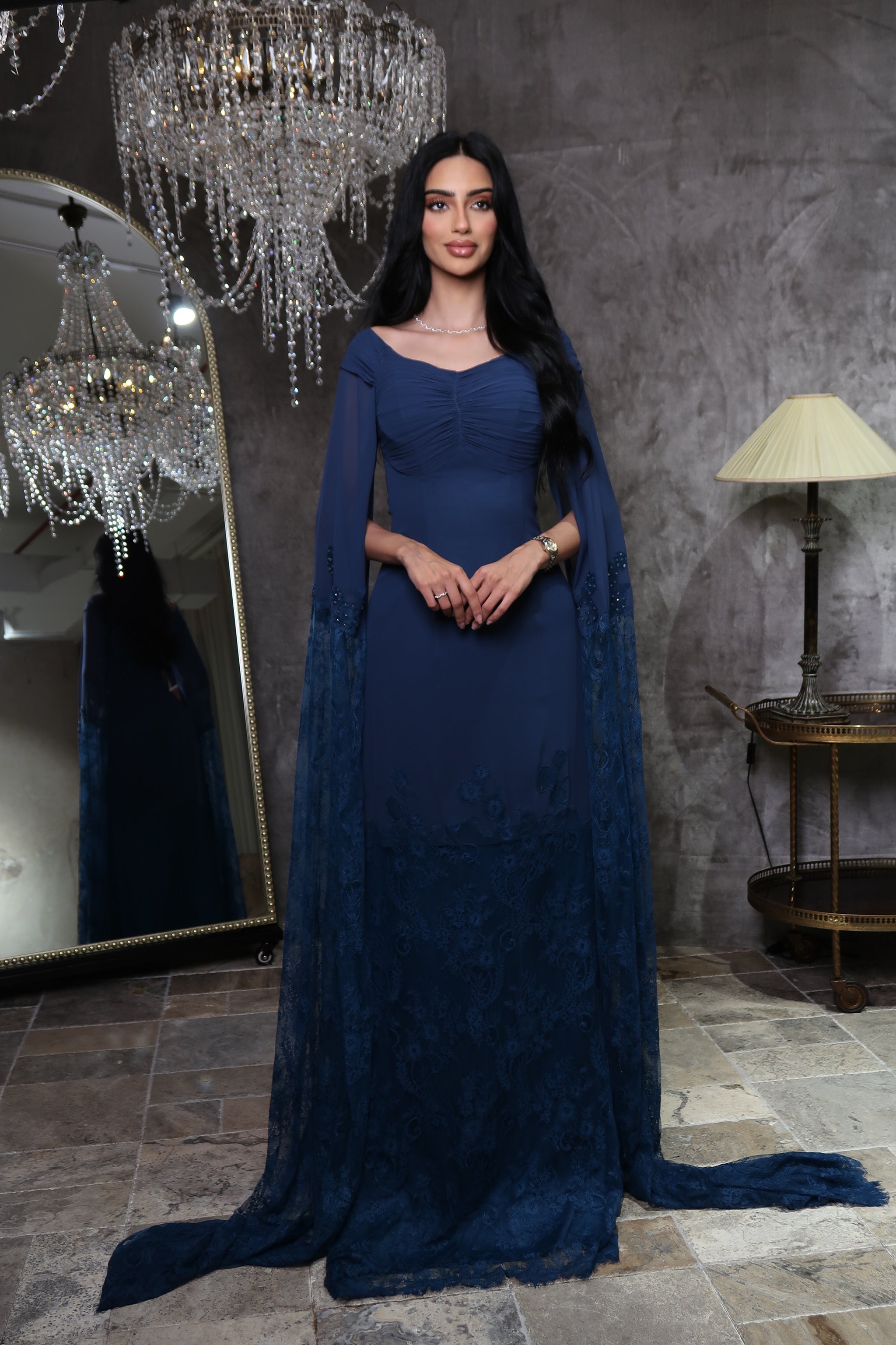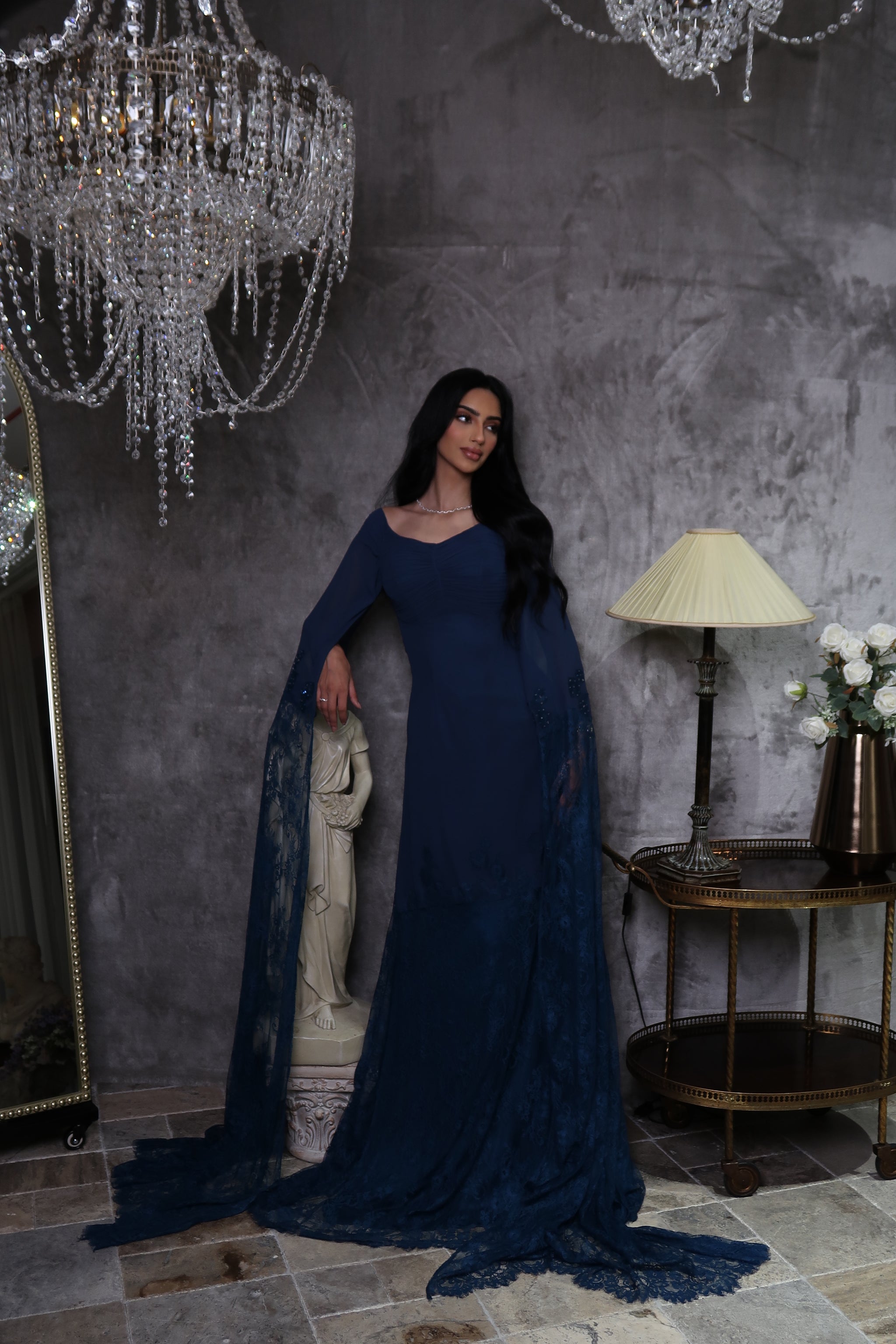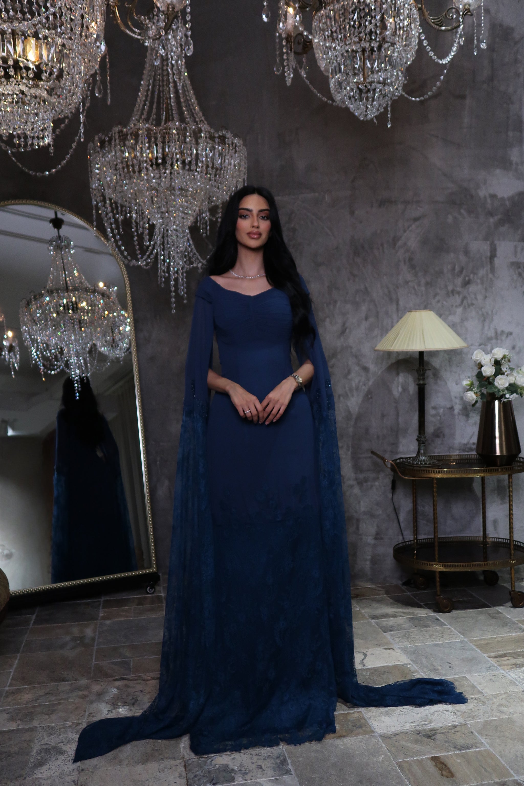 بإمكانك أيضًا تغيير نمط الفستان، على سبيل المثال، بإضافة أكمام أو تعديل شكل منطقة الصدر، أيًا كانت احتياجاتك، فلا تترددي في التواصل معنا، ونحن يمكننا رسم وتأكيد التغييرات التي ترغبين فيها.